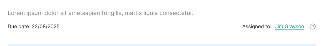 This shows the name of the current step, the step overview button, the step help text, due date and assignee.