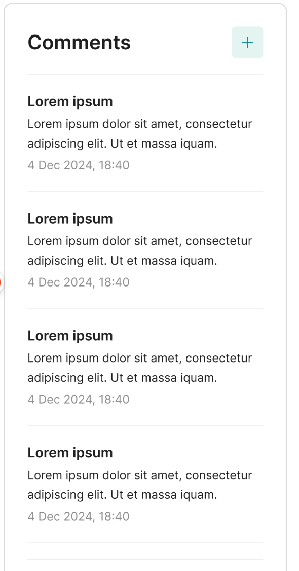 | Add comment button | N/A | Opens box to add a new comment |