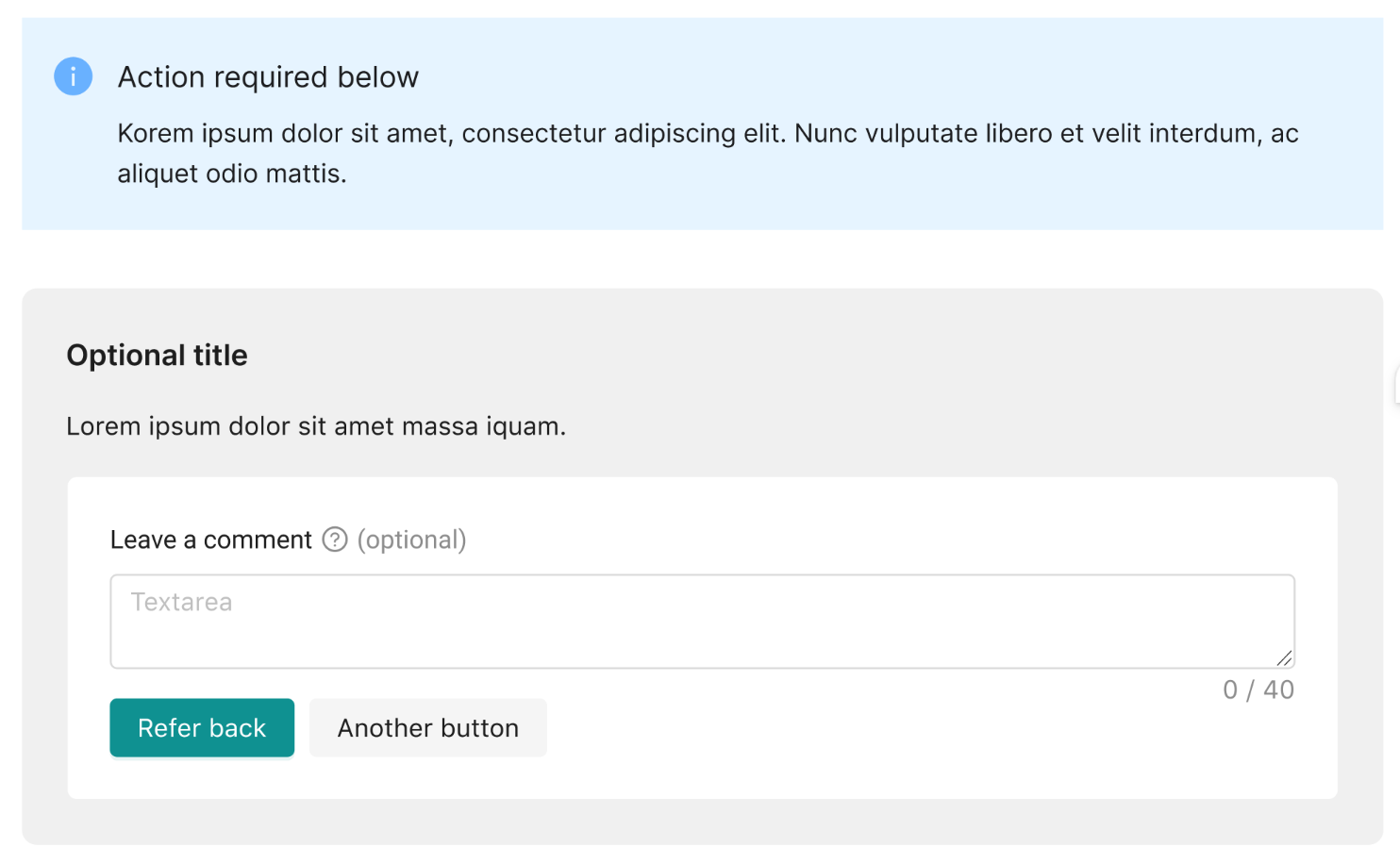 | Comment box | N/A | User may enter a comment. Will show on process comments feed |