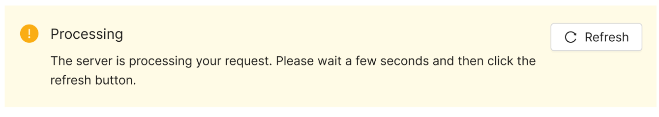 The server action title and message displays. The action will refresh automatically and the widget will disappear once it is complete. The user may manually refresh it by clicking the refresh button. |