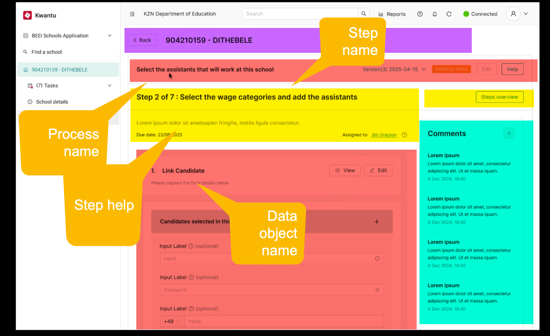 Page title Process name Step name Comment Data object (read only) |